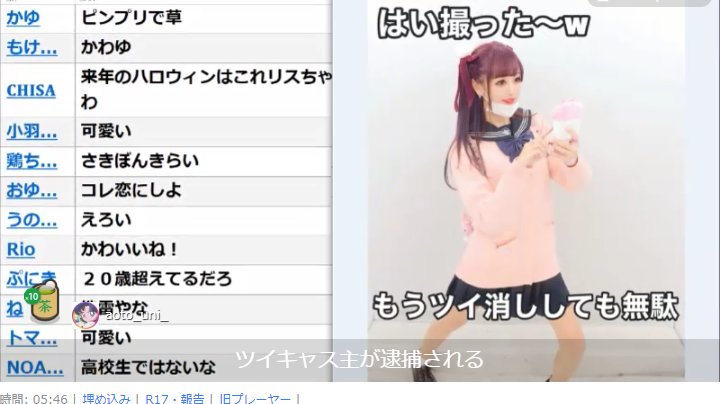 キャスリポ On Twitter 先日のコレコレ枠 インコおばさんが飛び降りチャレンジと題し 自 配信を行い激怒 Kore Ct 来栖しゅりのチェキを大量買いする猛者が出現 配信中に数秒間黙り込みシラス大の鼻くそが取れたことを報告 現在ローソンで実施中の