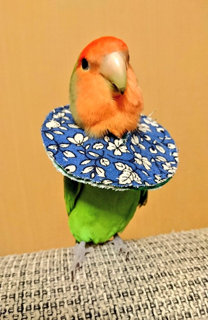 ヤマミー V Twitter 嫌がってたわりには清々しい表情なのはなぜでしょう 笑 コザクラインコのまっちゃん エリザベスカラー