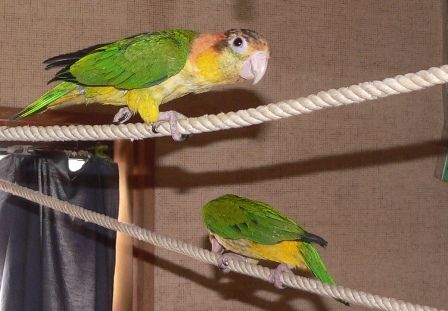 シロハラインコ兄弟にロープをプレゼント 元さんの藍と鳥ワールド