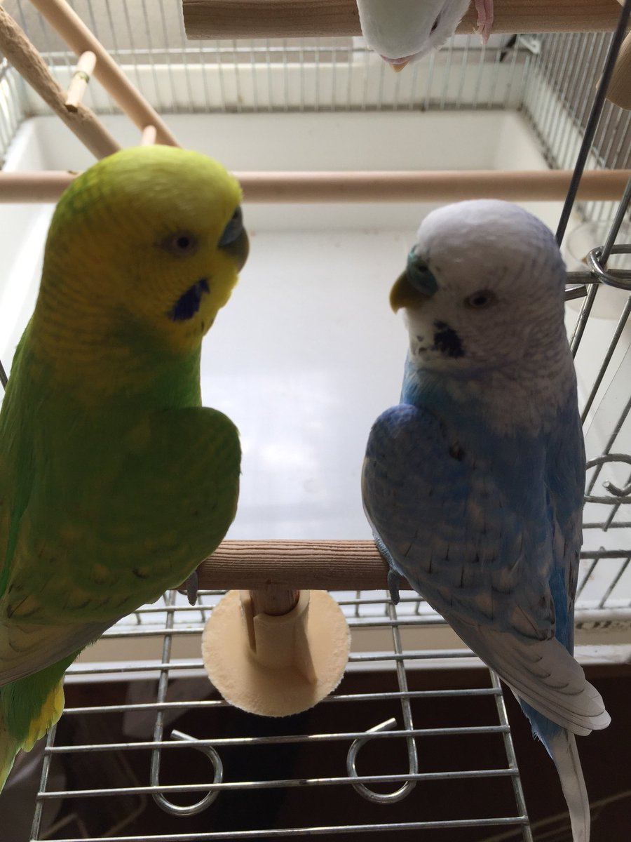 Jun A Twitter 今日の父子 ワキワキだねー 暑いよねー ワキワキが並んだら可愛いよーって言ったら止まり木に並んでくれた リス風インコの雲も写り込んでるよ 今日の父子 ろくゆい ろく ゆい 雲