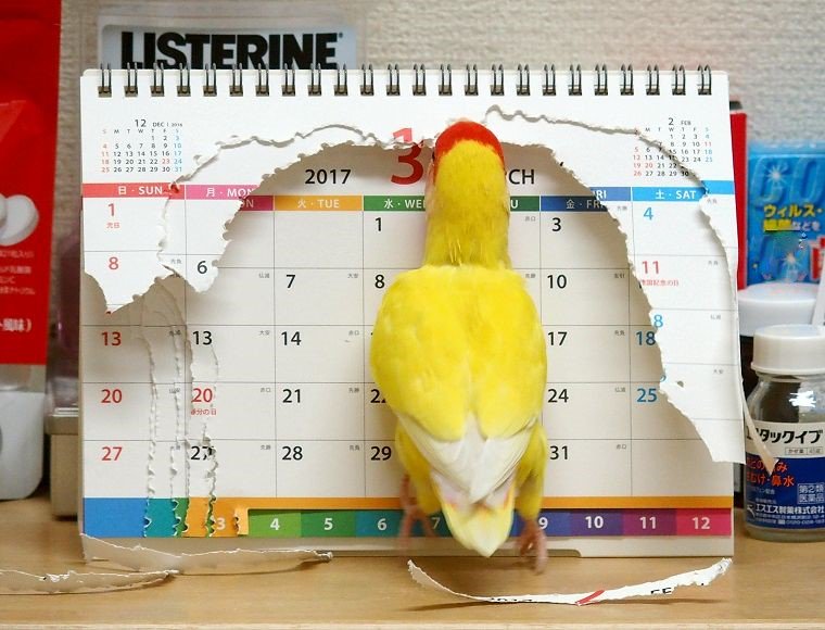カレンダーに過激ないたずらをしたインコがかわいすぎて怒れない ライブドアニュース