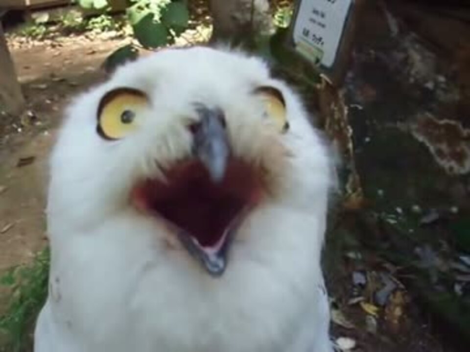 37秒後に注目 威嚇してくるフクロウの顔が面白い インコ 鳥 ニコニコ動画