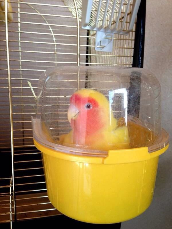 これで掃除も簡単 飛び散るインコのエサを100均グッズでブロック めじロング