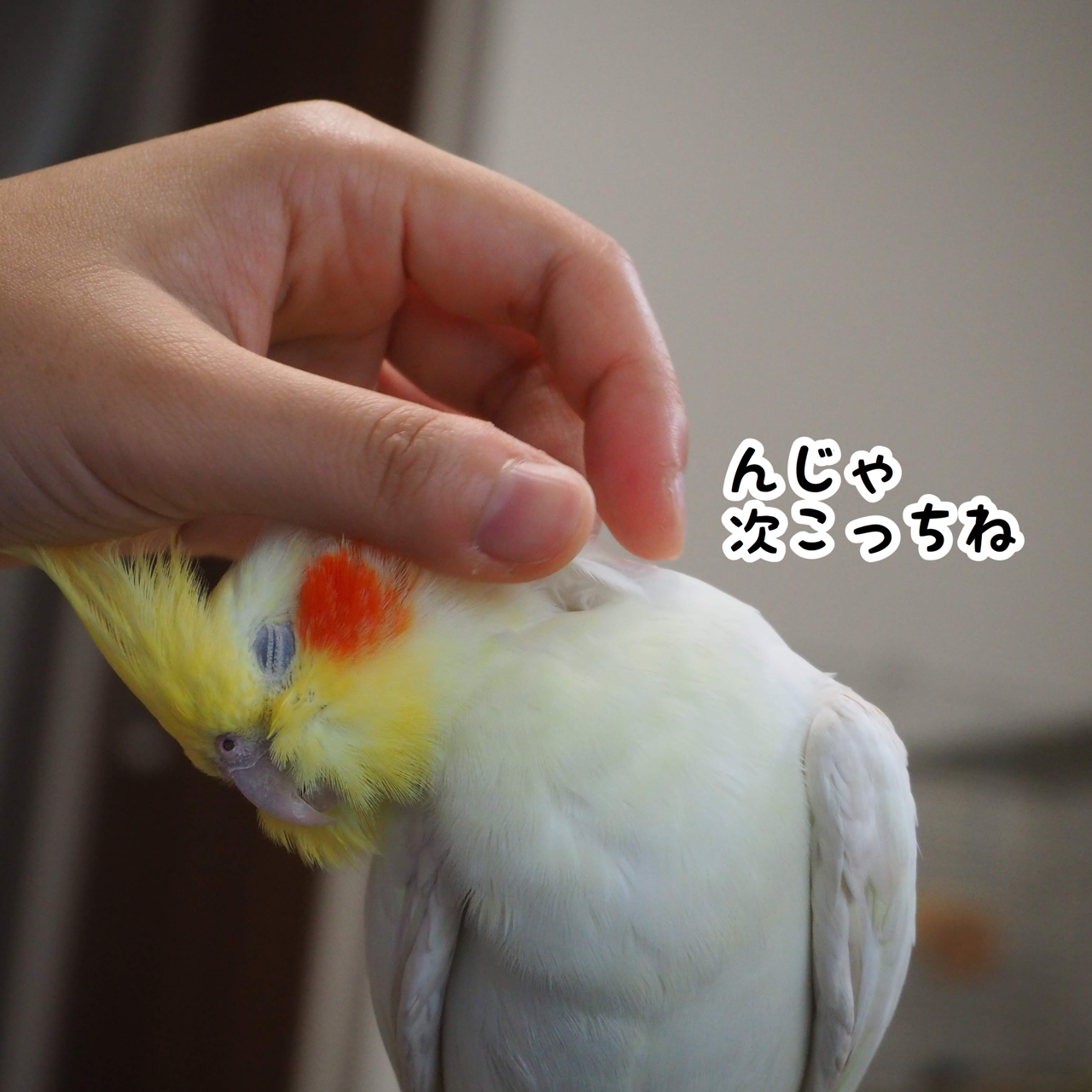 頭の上あたりから首筋をキューってなでる セキセイインコアルの精巣腫瘍闘病日記 オカメインコ レキ セキセイインコ レティ コザクラインコ レイ マメルリハ レミィ