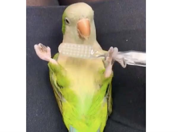 ゴシゴシ 歯ブラシを使って自分でマッサージをするインコ ニコニコニュース