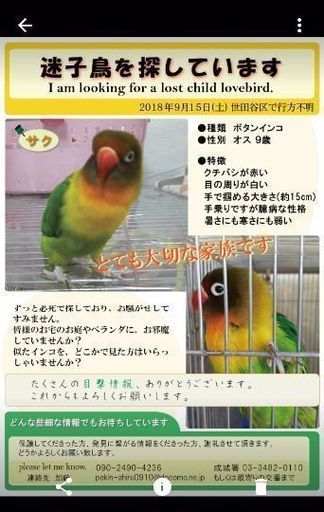 ボタンインコを探しています 口伝えで拡めて頂けると嬉しいです 加藤 世田谷の手伝って 助けての助け合い ジモティー
