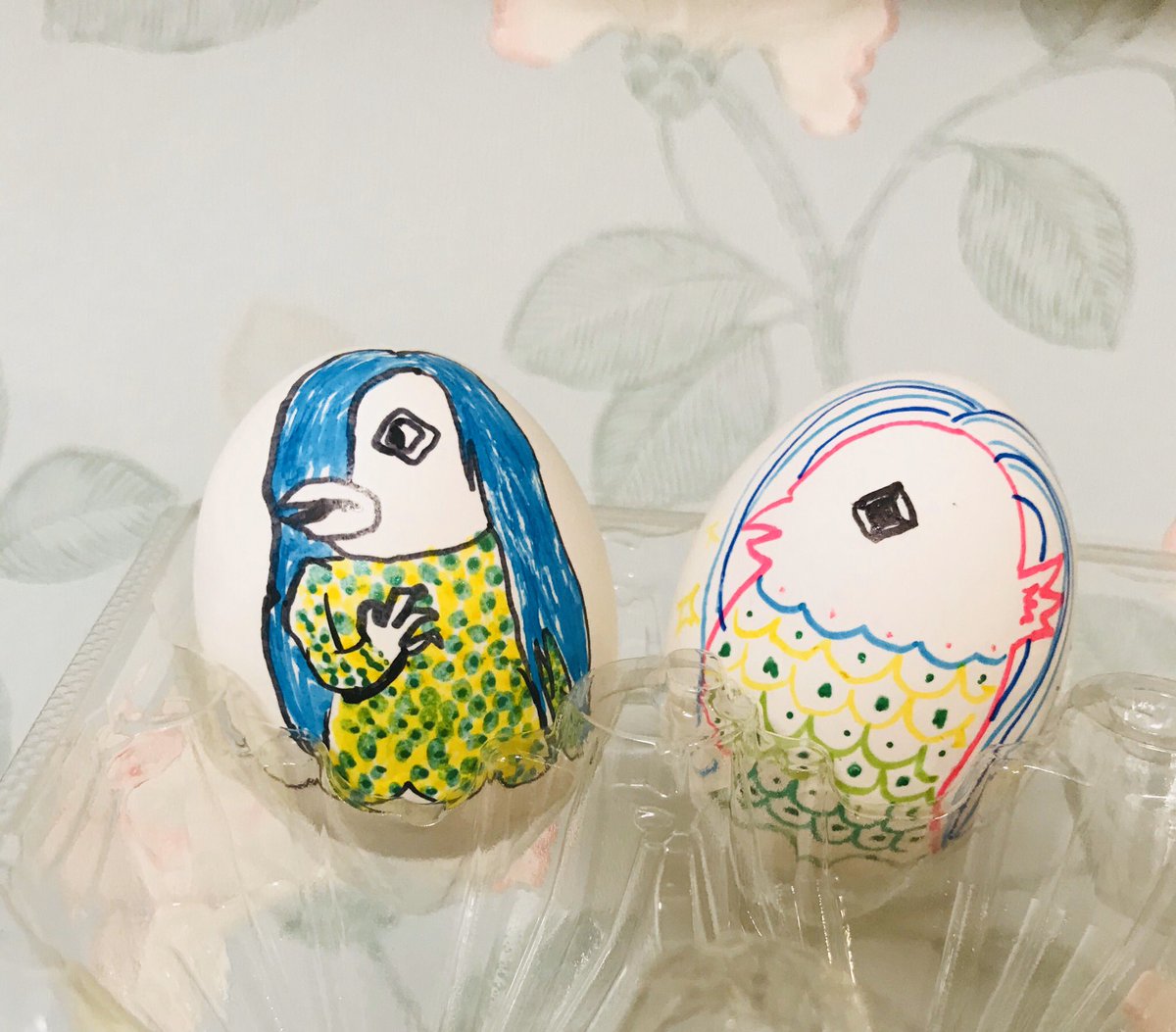 なつ On Twitter 娘と描いたイースターエッグ かーちゃんは輪郭がピンクのアマビエ 娘はまさかの水木しげるバージョンアマビエ 2枚目は娘のたまごくんとたまごちゃん そのまんま