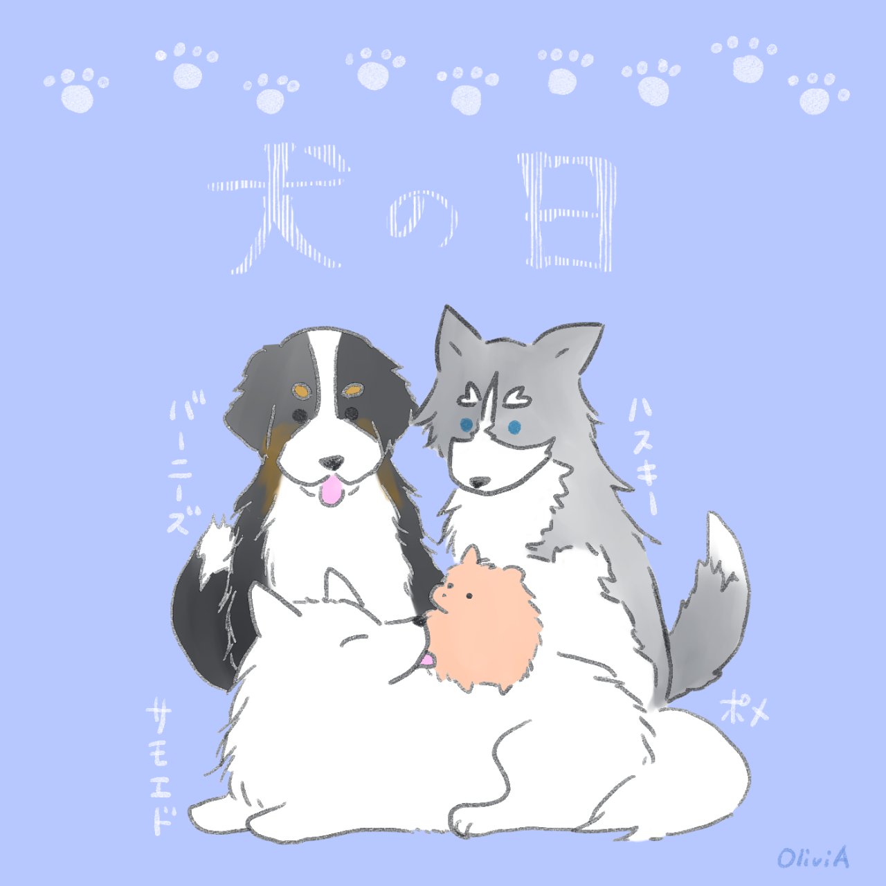 Olivia Lineスタンプ発売中 En Twitter 犬の日ということで 個人的に特に好きな犬種を集めてみた 大きいのも小さいのも可愛い 犬の日 シベリアンハスキー バーニーズマウンテンドッグ サモエド ポメラニアン