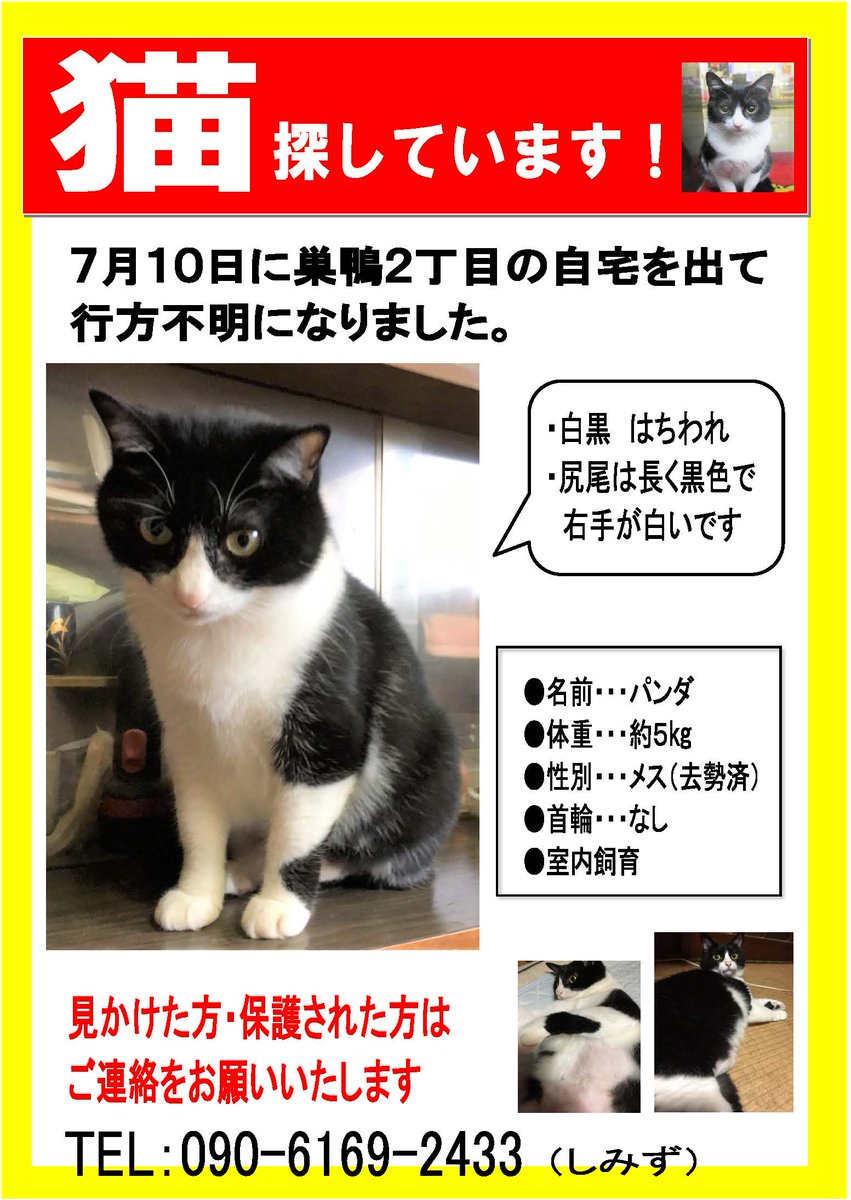 パンダまま とも V Twitter 文書消えてしまっているので連投すみません 似てるかもでも構いません よろしくお願いいたします 巣鴨 駒込 ハチワレ 迷子猫 白黒 帰ってきて