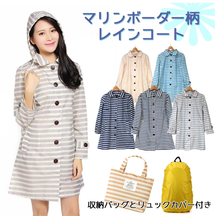 レインコート レディース レインウェア マリンボーダー柄 全5色 デイリースタイル フード付き 爽やか お洒落 B01 I1raincoat1028 パンダファミリー 通販 Yahoo ショッピング