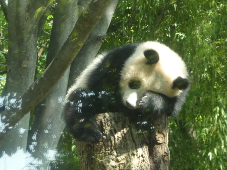 写真シリーズ 表情 かわいすぎる寝姿 木の上で寝るパンダに来園客はメロメロ レコードチャイナ