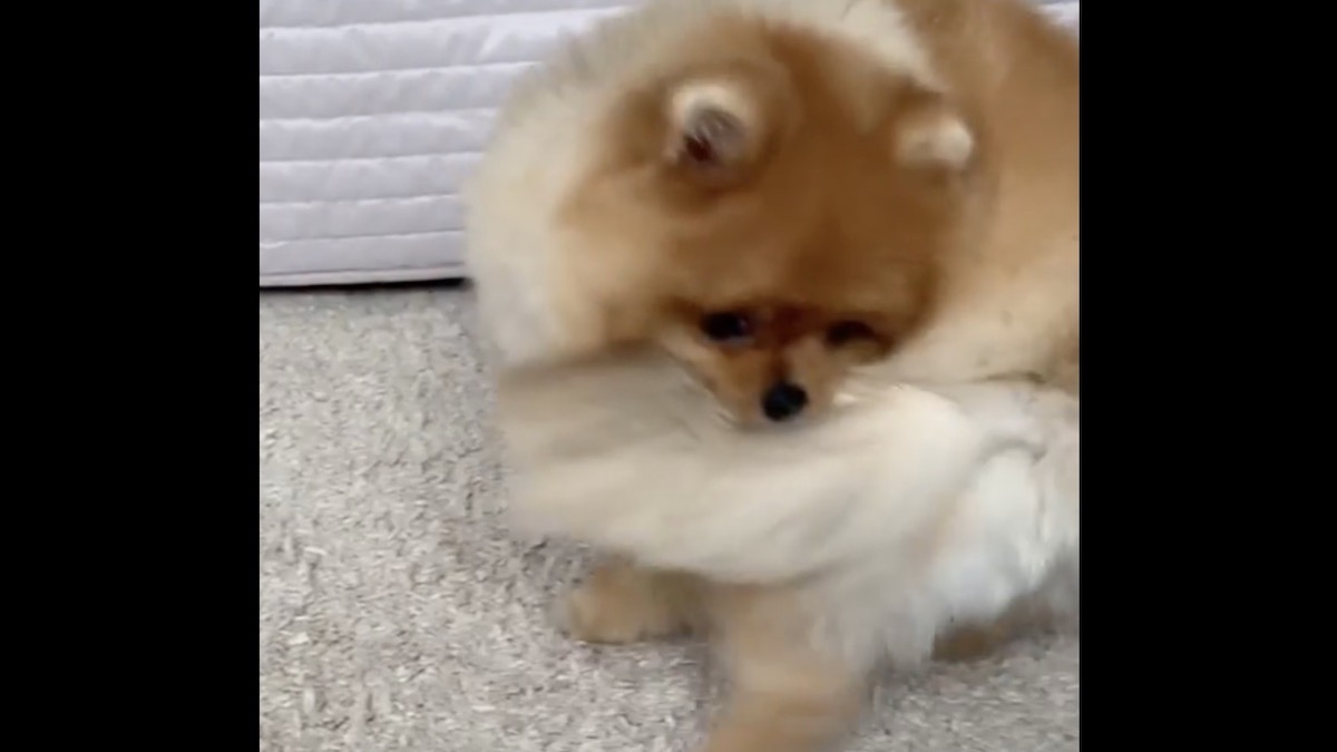 可愛すぎる お兄ちゃんのシッポで遊ぶ赤ちゃんポメ Youtube