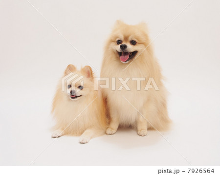 お座りして笑う二匹のポメラニアンの写真素材 7926564 Pixta