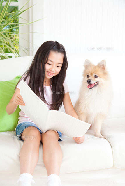 本を見るポメラニアンと女の子 11031062151 の写真素材 イラスト素材 アマナイメージズ