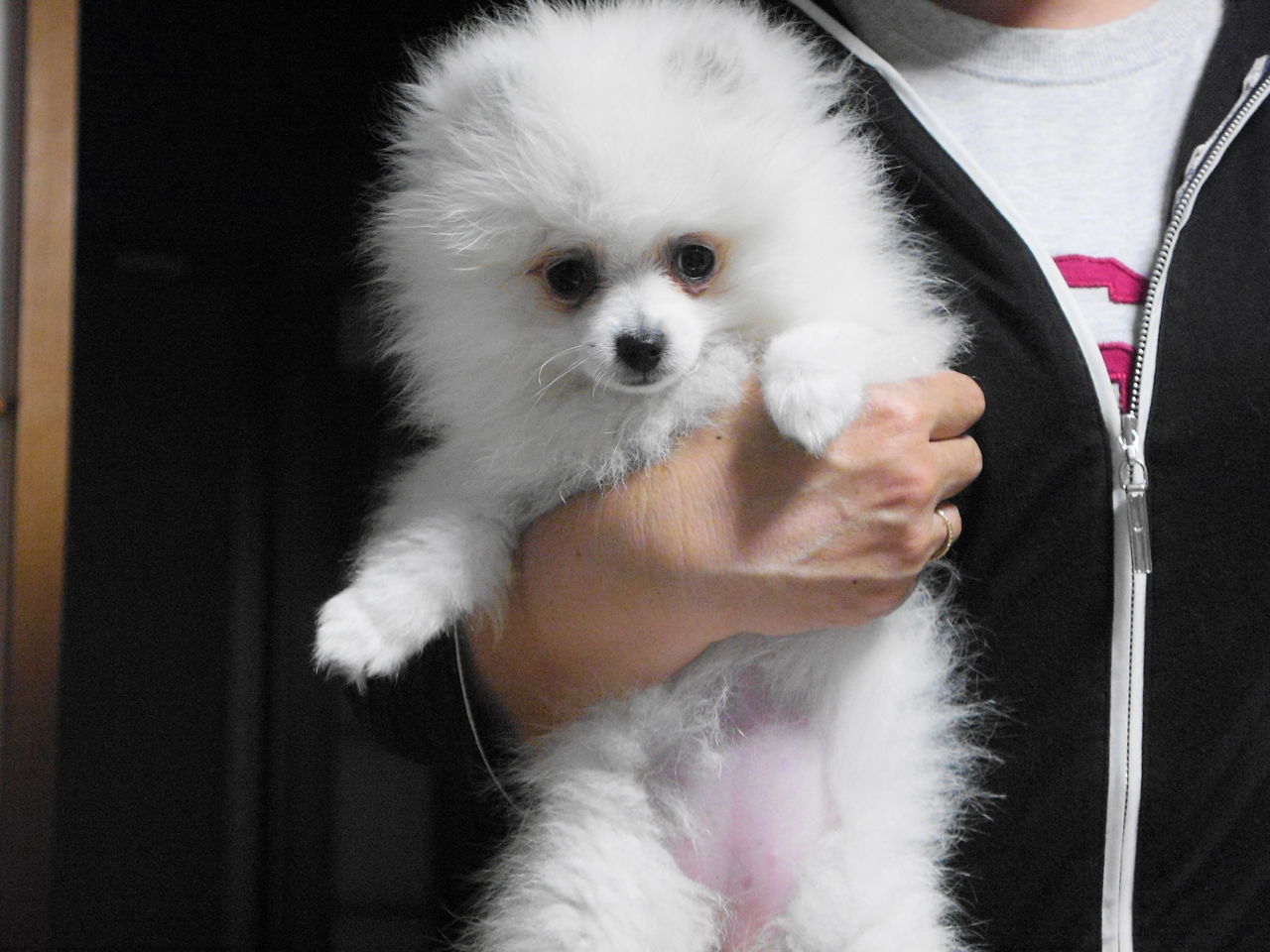 モフモフ白ポメの肉球は何色 生後3ヵ月が持ち上げられてジタバタ ニコニコ動画