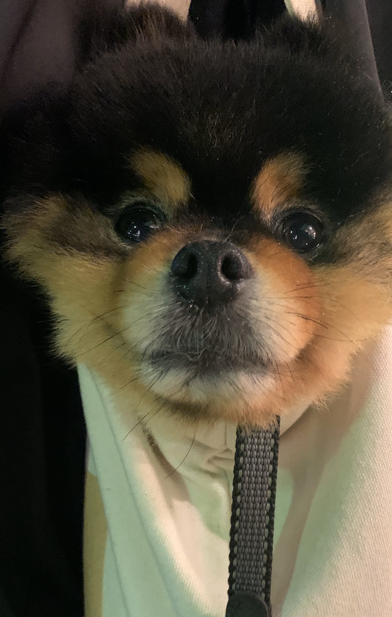 ট ইট র タヌキ似のたろ吉 ポメラニアン たろ吉を私が自作したたろ吉バックに入れて運搬しました 4キロあるのでそれなりに重いです ちなみに この写真はコラージュではありません お殿様のがお籠にのっているかのごとく 気分良さそう顔をしていたので 複雑