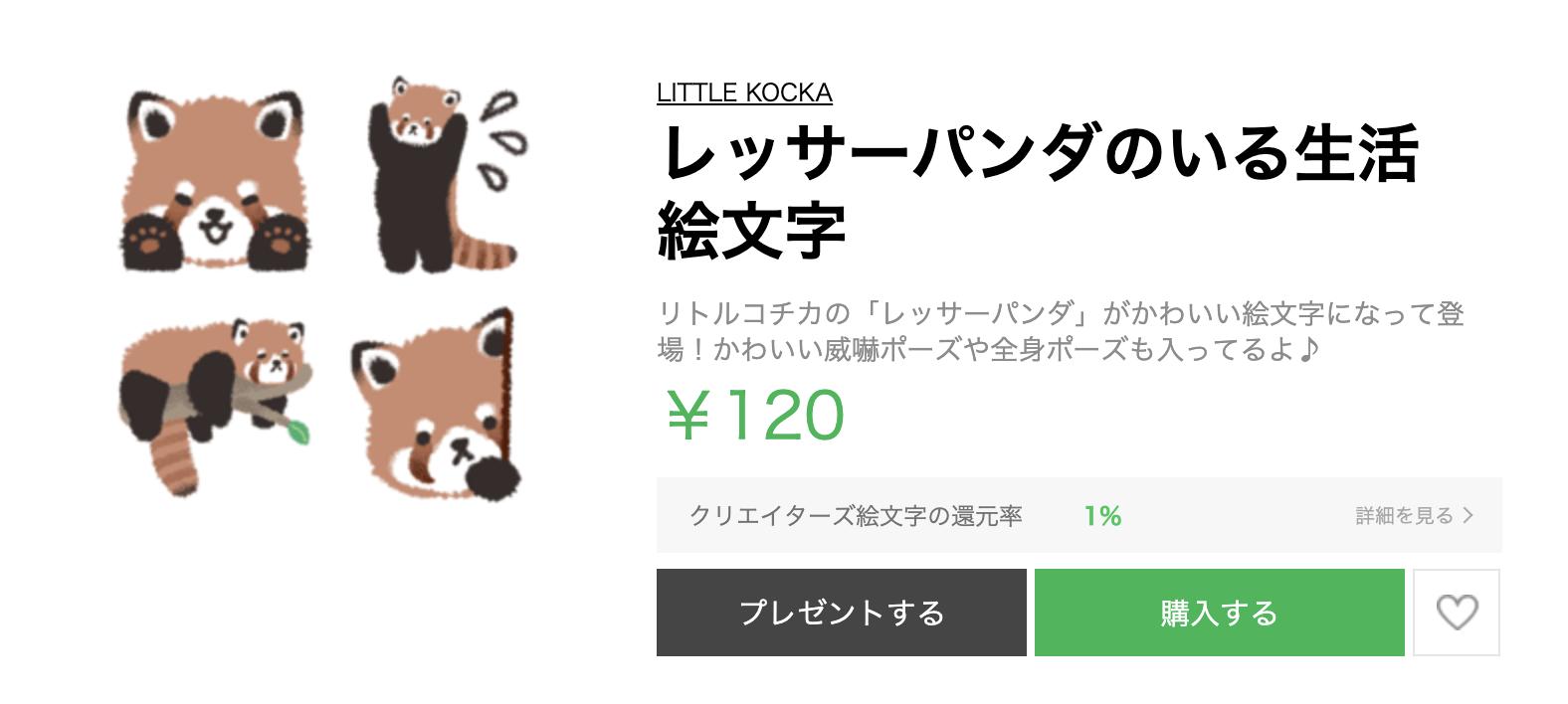 Line絵文字 チビかわ レッサーパンダ絵文字 40種類 120円