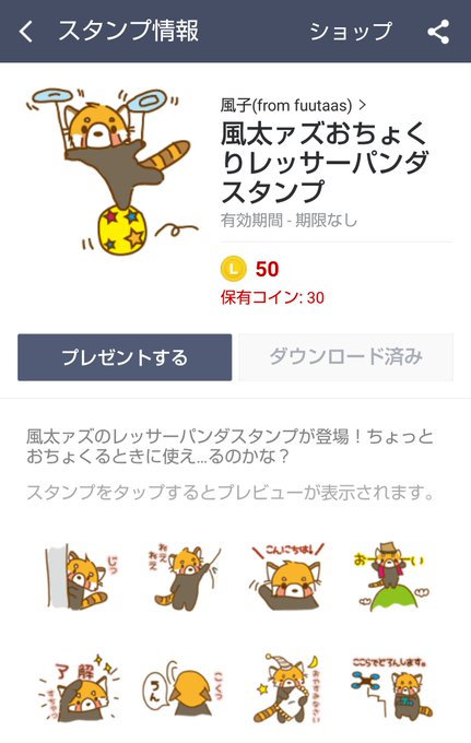 レッサーパンダのたぬきちくん Lineクリエイターズスタンプ Stamplist