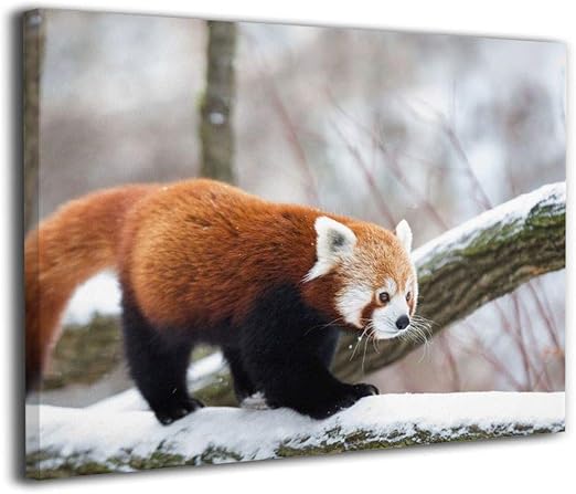 Amazon Co Jp 壁掛け式ポスター ノウフレーム絵画 部屋インテリア絵画 40cmx30cmx2 5cm 動物 雪の中でレッサーパンダ ホーム キッチン