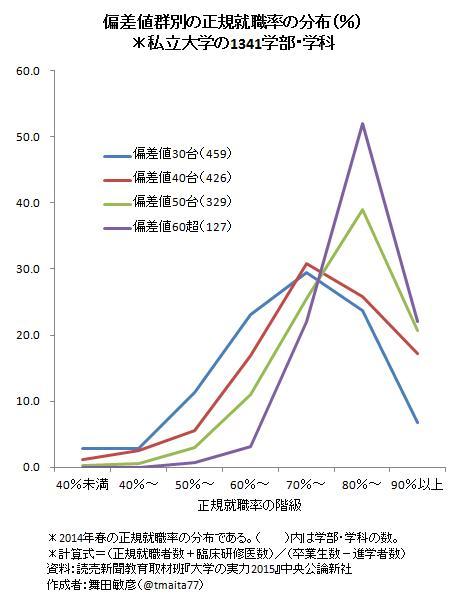 データえっせい 偏差値と正規就職率の関連