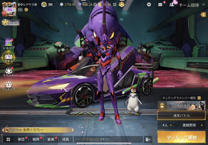 荒野行動 エヴァコラボ開始 無課金で爆走サタンを狙う かてもすの日記
